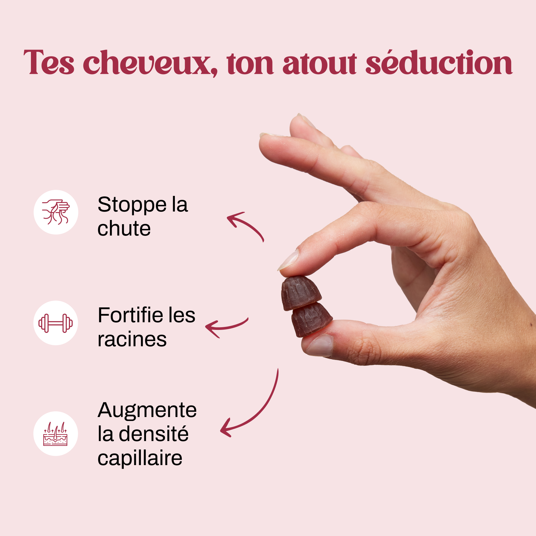 Des vitamines et des minéraux essentiels pour des cheveux plus forts et plus brillants.